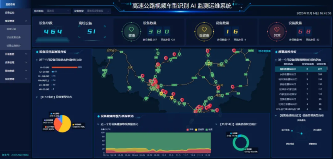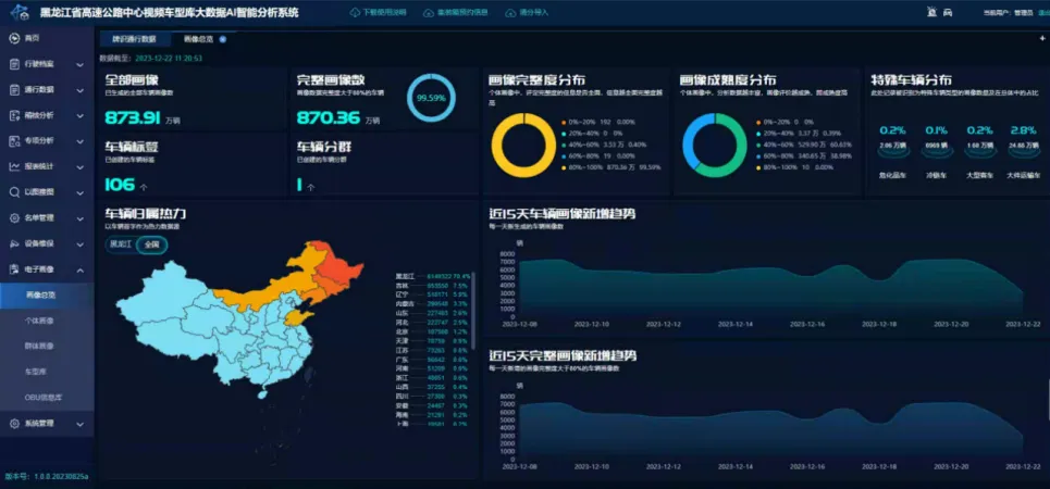 基于設備使用、管理中產生的海量數據,信路威聯(lián)合黑龍江省交投高速公路運營管理有限公司研發(fā)了“高速公路視頻車型庫及大數據Al智能分析系統(tǒng)〞平臺,實現(xiàn)了設備運行狀態(tài)監(jiān)測感知、車型庫建立、大數據處理與分析功能,提高了設備及平合的使用效果與效率!