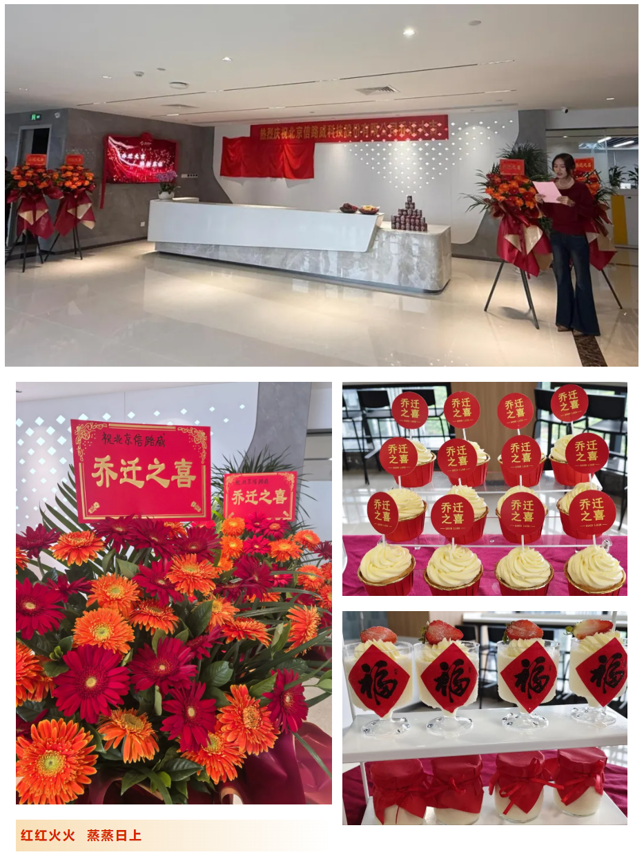 信路威董事長(zhǎng)王超先生、總經(jīng)理李純先生、副總經(jīng)理胡中華先生與特邀嘉賓出席了喬遷儀式。慶典現(xiàn)場(chǎng)花籃錦簇,處處洋溢著熱烈和喜慶氛圍,嘉賓與同事們紛紛記錄下這一重要時(shí)刻。