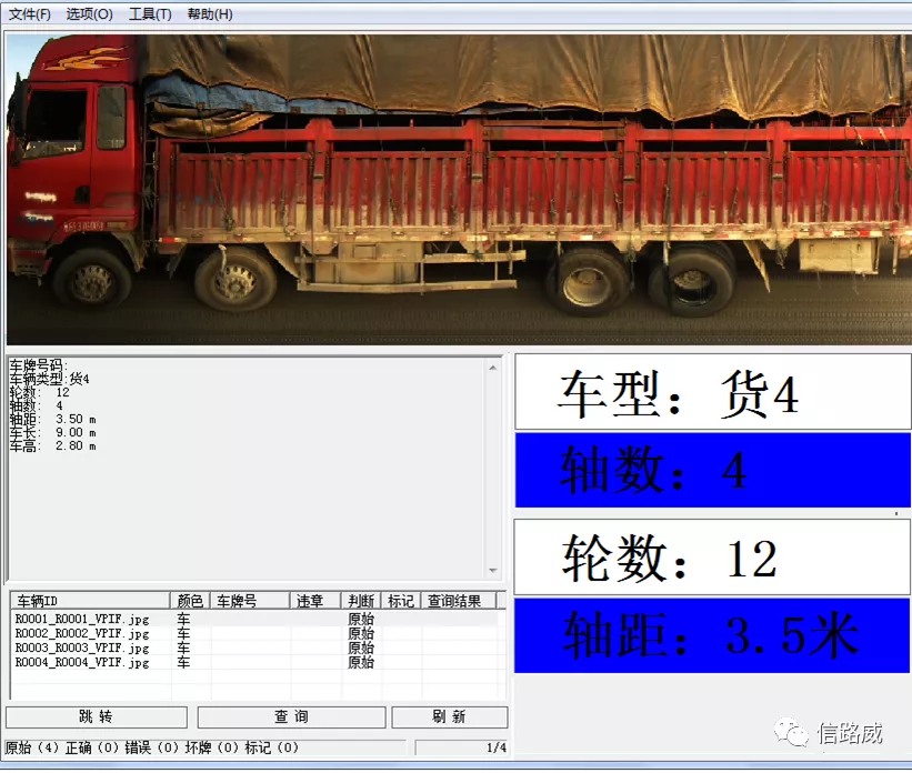 圖像取證:對超載車輛完成符合證據(jù)鏈要求的圖片、錄像。車型/軸型識別:自動識別車型和軸型(軸數(shù)、輪數(shù)),結(jié)合稱重數(shù)據(jù)確定車輛是否超載。治超是行政執(zhí)法行為,完整、有效的執(zhí)法證據(jù)是執(zhí)法的關(guān)鍵,視頻圖像是治超的核心證據(jù)。信路威車型識別設(shè)備輸出的圖像數(shù)據(jù)包含車輛前部、側(cè)面、尾部圖片以及視頻記錄(不小于5s),可清晰辨識車牌號碼、車輛軸數(shù)/軸型、車輛特征、載貨情況等;結(jié)合稱重設(shè)備的數(shù)據(jù),可判定車輛是否超限載。信路威車型識別設(shè)備實(shí)時視頻檢測,可精確區(qū)分客、貨車;車型、軸數(shù)、軸型識別滿足《GB1589-2016 汽車、掛車及汽車列車外廓尺寸、軸載及質(zhì)量限值》要求,車輛軸數(shù)及軸型成為車輛超限載認(rèn)定的核心依據(jù);同時輸出車型、車輛軸數(shù)、軸距、輪數(shù)、車輛長、寬、高等數(shù)據(jù)信息發(fā)送至治超系統(tǒng)。