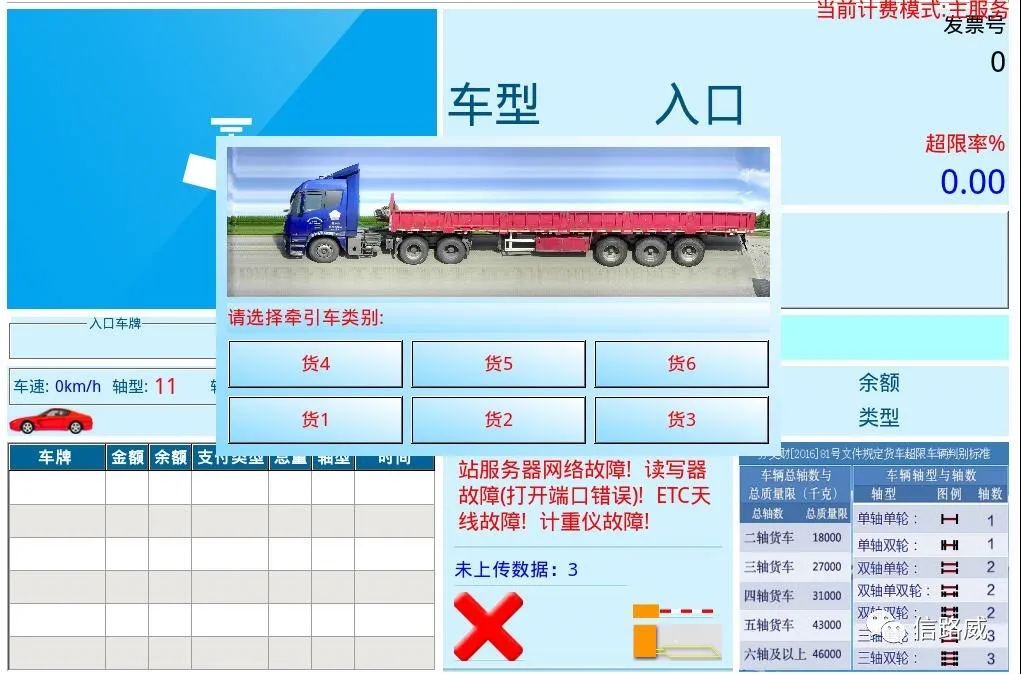 MTC入口車道應(yīng)確保將車牌號牌、車軸數(shù)尤其是牽引拖掛車軸數(shù)、車型等信息準(zhǔn)確寫入CPC卡。當(dāng)入口稱重檢測系統(tǒng)識別的車型、軸數(shù)異常時,應(yīng)支持收費(fèi)員人工校正。在MTC車道,收費(fèi)員對車型的準(zhǔn)確判別,是確保收費(fèi)準(zhǔn)確的關(guān)鍵。入口車道收費(fèi)員需人工判別車型,再與治超系統(tǒng)輸出的車型、軸數(shù)進(jìn)行比對,不符時進(jìn)行校正。在出口車道,收費(fèi)員進(jìn)行人工判別車型,與CPC內(nèi)的入口信息比對,確保準(zhǔn)確收費(fèi)。在車流量大、夜間時,收費(fèi)員對車型的準(zhǔn)確判別非常困難,有時需要探身出收費(fèi)亭進(jìn)行查看,風(fēng)險較大。在MTC車道設(shè)置信路威車型識別設(shè)備,對車輛進(jìn)行車牌、車型、軸數(shù)的自動識別,將相關(guān)信息送至車道控制器,同時將車輛側(cè)面全圖在收費(fèi)界面上顯示,使收費(fèi)員可以快速進(jìn)行確認(rèn)和操作,提高通行效率、降低工作強(qiáng)度和風(fēng)險。車輛側(cè)面圖片及車型識別結(jié)果-收費(fèi)界面示意圖
