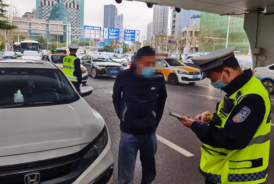 3月18日下午,在京漢大道武勝路口,硚口交警許堯、嚴(yán)木林根據(jù)手機(jī)上彈出的提示信息, 20分鐘之內(nèi)連續(xù)查獲3輛逾期未年檢的車(chē)輛,均處以罰款200元、計(jì)3分的處罰。