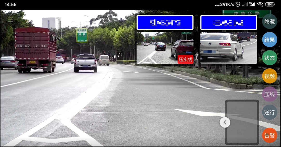 通過(guò)簡(jiǎn)單的場(chǎng)景設(shè)定,實(shí)現(xiàn)對(duì)機(jī)動(dòng)車(chē)壓實(shí)線、壓導(dǎo)流區(qū)、逆行、占用專用車(chē)道、占用應(yīng)急車(chē)道等交通違法行為的自動(dòng)抓拍,疊加符合公安部標(biāo)準(zhǔn)的路段代碼、違法類型、車(chē)牌號(hào)碼等信息,實(shí)時(shí)上傳到后端平臺(tái)。