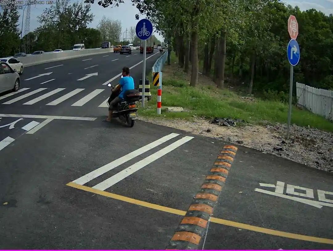 路口全景攝像機,自動抓拍經(jīng)過的非機動車,智能分析非機動車駕駛?cè)耸欠衽宕黝^盔,未戴頭盔則語音提醒,未戴頭盔檢出率≥95%。