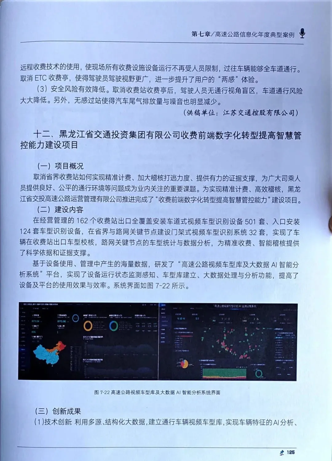 近期,第26屆高速公路信息化大會在安徽合肥盛大開幕,大會首次發(fā)布了《中國高速公路信息化發(fā)展報告(2023)》。黑龍江省交通投資集團委托高速運營公司代建的“收費前端數字化轉型 提高智慧管控能力建設項目”從全行業(yè)78個報送案例中脫穎而出,入選《報告》“高速公路信息化年度典型案例”,成為行業(yè)首發(fā)15個典型案例之一。