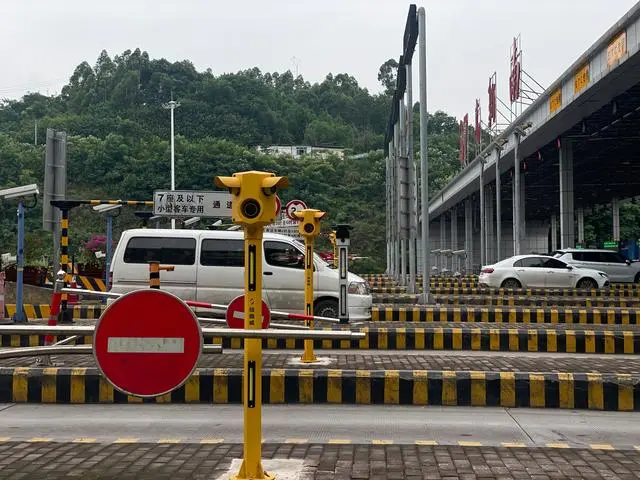 在S7高新南收費站現(xiàn)場,除了收費亭,每條收費車道上最顯著的變化就是增加了多臺智能設備——黃白相間的智能收費機器人、車型識別機器人和無感車檢器等,科技感十足。