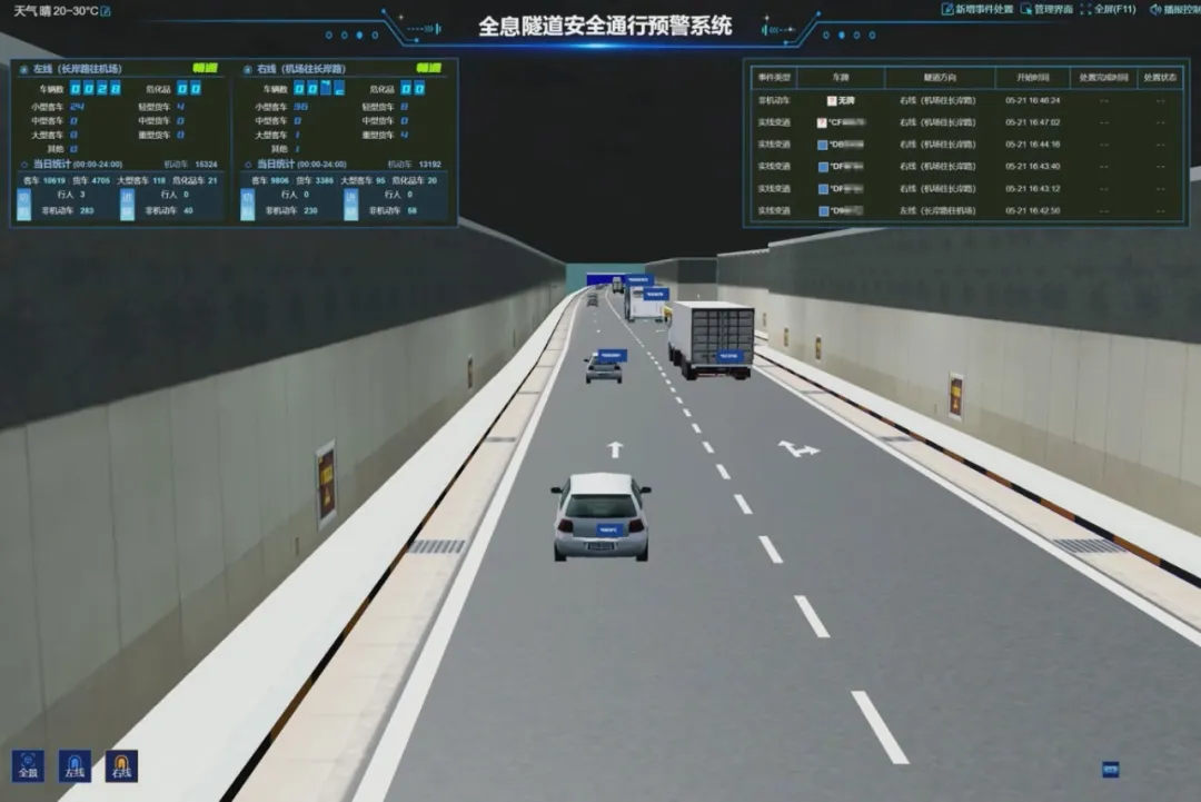 基于數(shù)字孿生底座可以建設(shè)多個(gè)數(shù)字化應(yīng)用場(chǎng)景,如:提供“兩客一?!钡忍胤N車輛全域跟蹤,實(shí)時(shí)孿生車輛的位置、速度等信息,并可以對(duì)隧道內(nèi)車輛逆行、實(shí)現(xiàn)變速、車輛違停等多種交通事件信息的實(shí)時(shí)動(dòng)態(tài)孿生,實(shí)現(xiàn)對(duì)隧道的智能化、數(shù)字化管理。