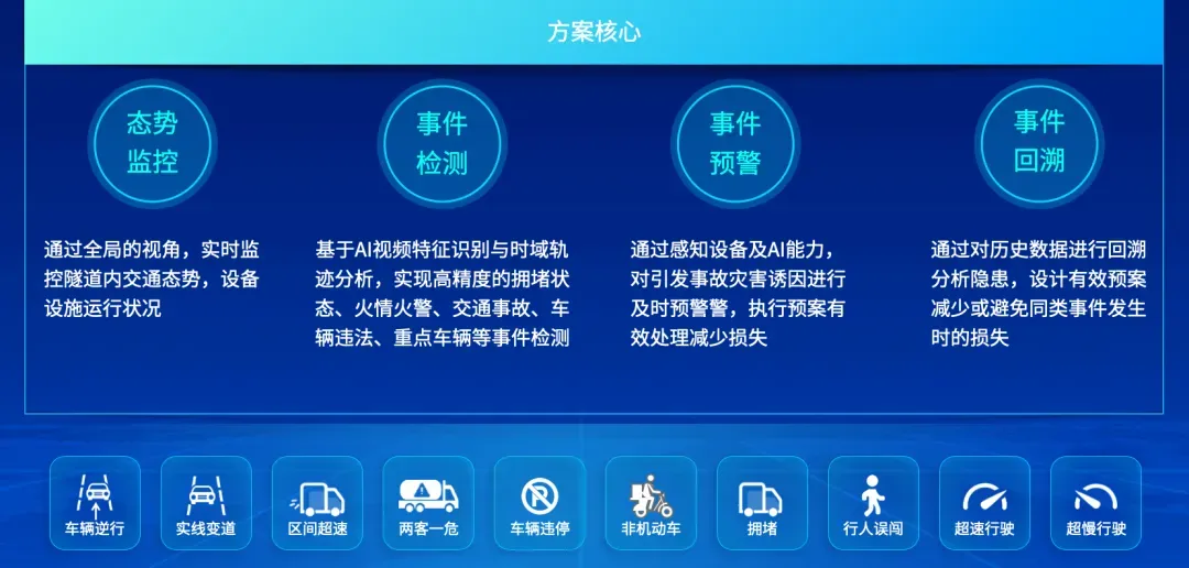 信路威“高速哨兵”通過(guò)過(guò)AI智能分析,識(shí)別行人/非機(jī)動(dòng)車車輛,檢測(cè)機(jī)動(dòng)車緩行、違停、倒車等違規(guī)行為,可應(yīng)用于高速公路隧道路段進(jìn)行安全預(yù)警,對(duì)違規(guī)行為給予預(yù)警和驅(qū)離,降低高速高速公路通行事故發(fā)生率和傷亡率,保障行車安全。