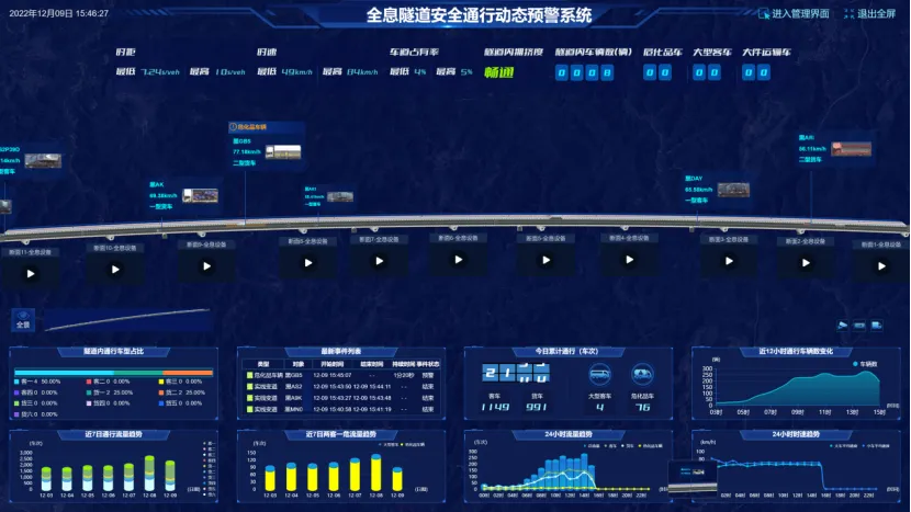 信路威全息隧道系統(tǒng)具有從車輛駛?cè)胨淼赖杰囕v駛出隧道的全程無縫實(shí)時車輛信息和交通狀況采集功能,并利用三維視頻檢測技術(shù)實(shí)現(xiàn)了對“兩客一?!钡戎攸c(diǎn)車輛的有效檢測和監(jiān)管。系統(tǒng)對隧道內(nèi)車輛擁堵、排隊(duì)、停車等交通異常事件實(shí)現(xiàn)了實(shí)時監(jiān)測,并具有智能研判、及時告警功能,監(jiān)控人員可及時查看、處置隧道事件,確保隧道內(nèi)交通安全。