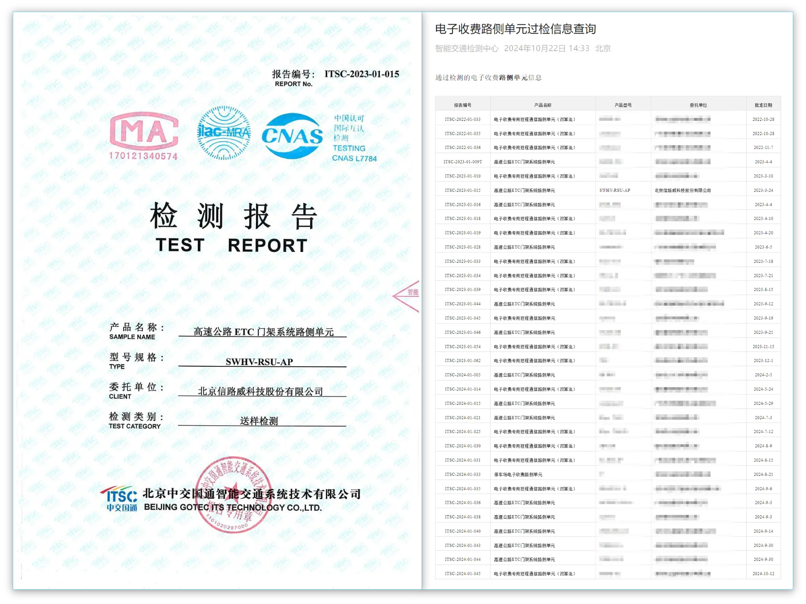 近期,交通部智能交通檢測中心發(fā)布了通過檢測的電子收費路測單元信息,信路威智能ETC路側(cè)單元通過了檢測。